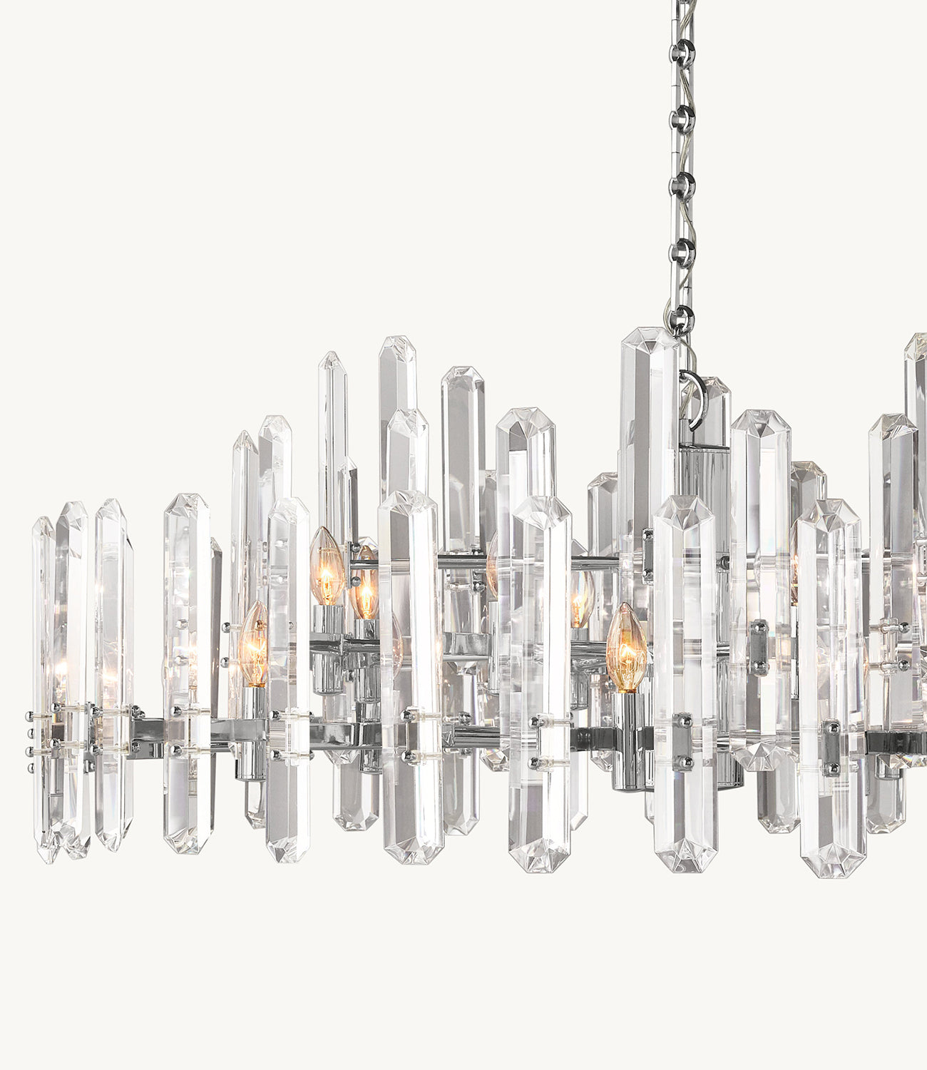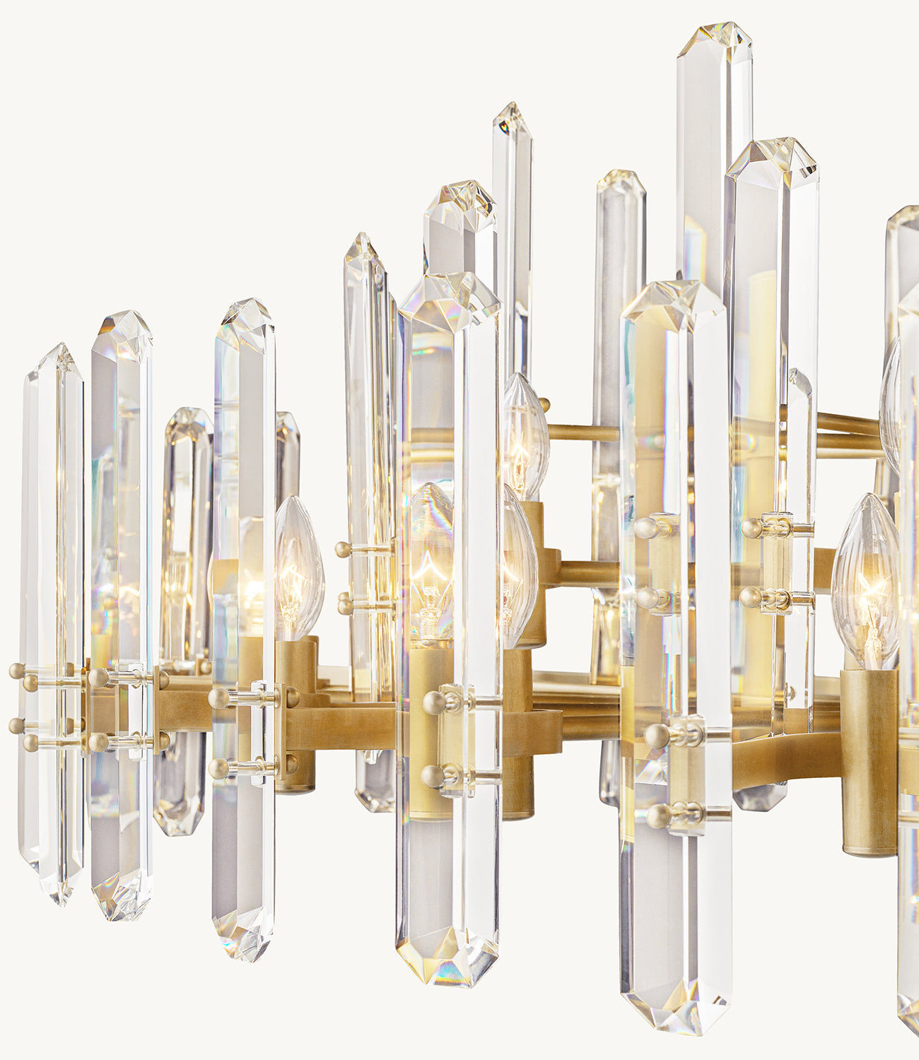 设计师将超透明玻璃与坚固的黄铜框架相结合,水晶在室内外反射光线,使您的客厅或餐厅看起来更加美丽和生动。