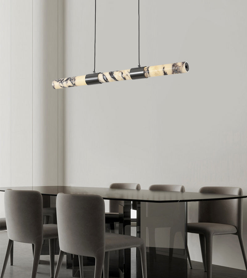 Elevate your space with the Marble Linear Suspension Light, a sculptural fusion of natural marble and sleek metal that delivers timeless elegance and warm, ambient illumination.
