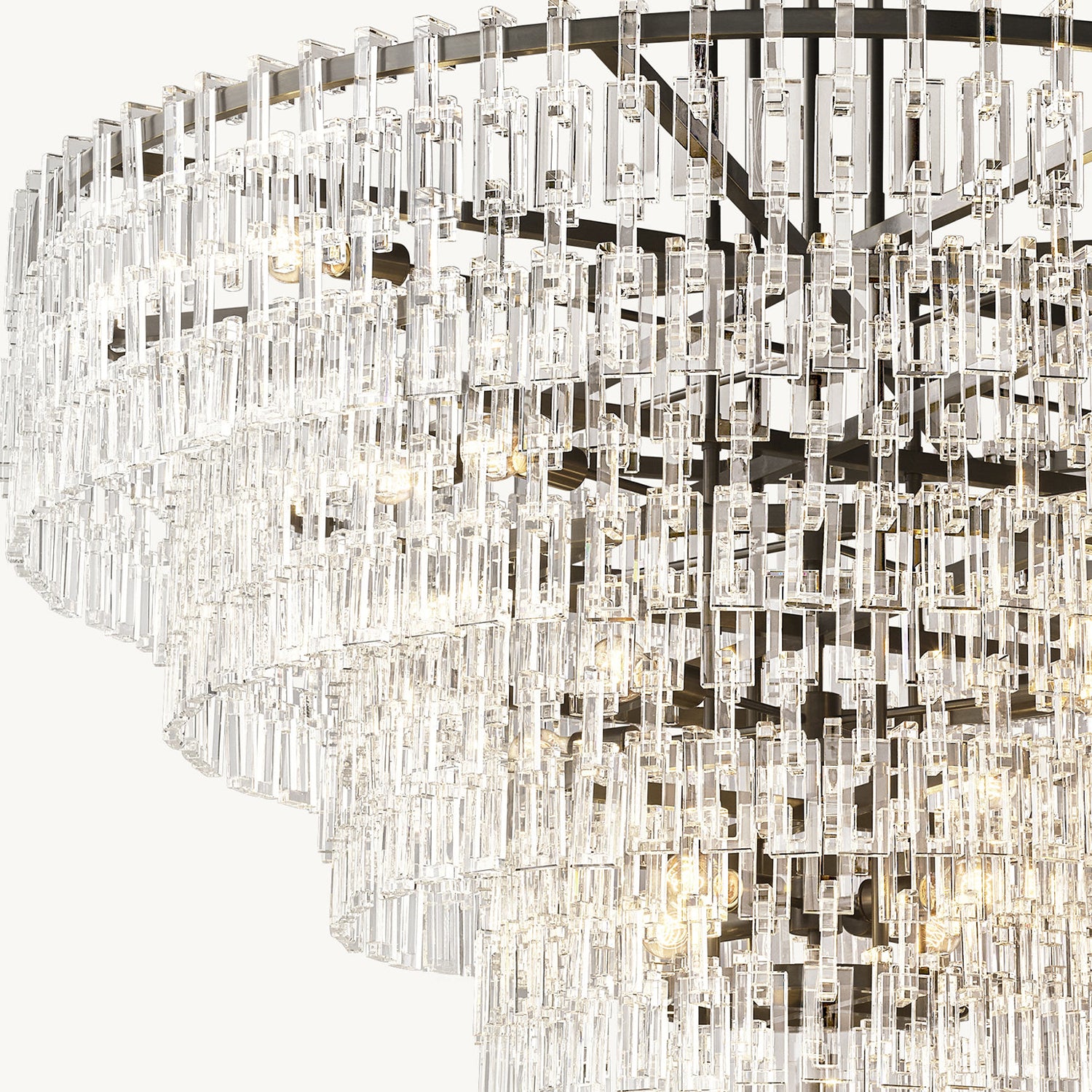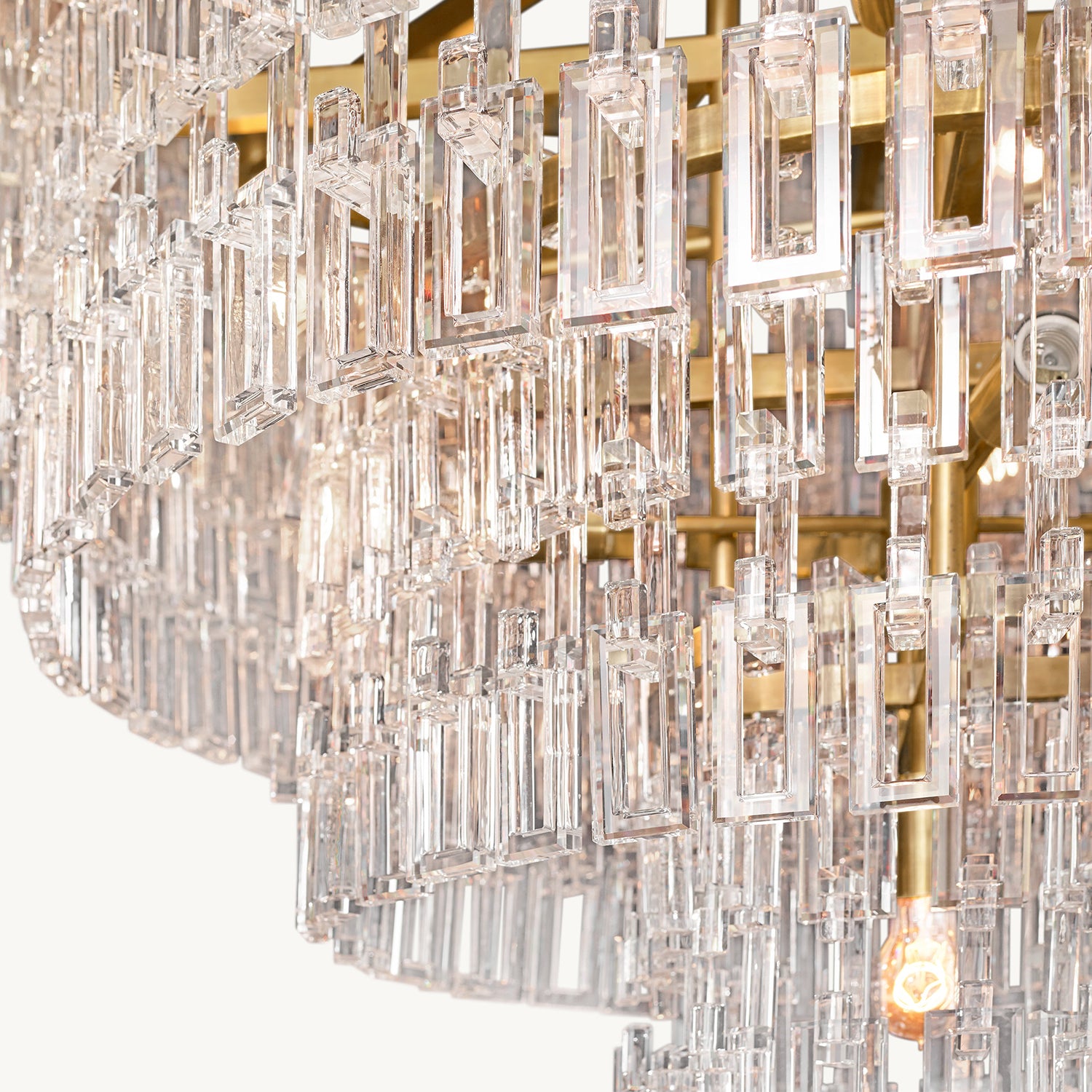 这款枝形吊灯采用抛光黄铜框架,营造出温暖的金色外观,为您的用餐空间增添经典风格和优雅气息,并饰有三/四/五层的透明玻璃水晶棒。
