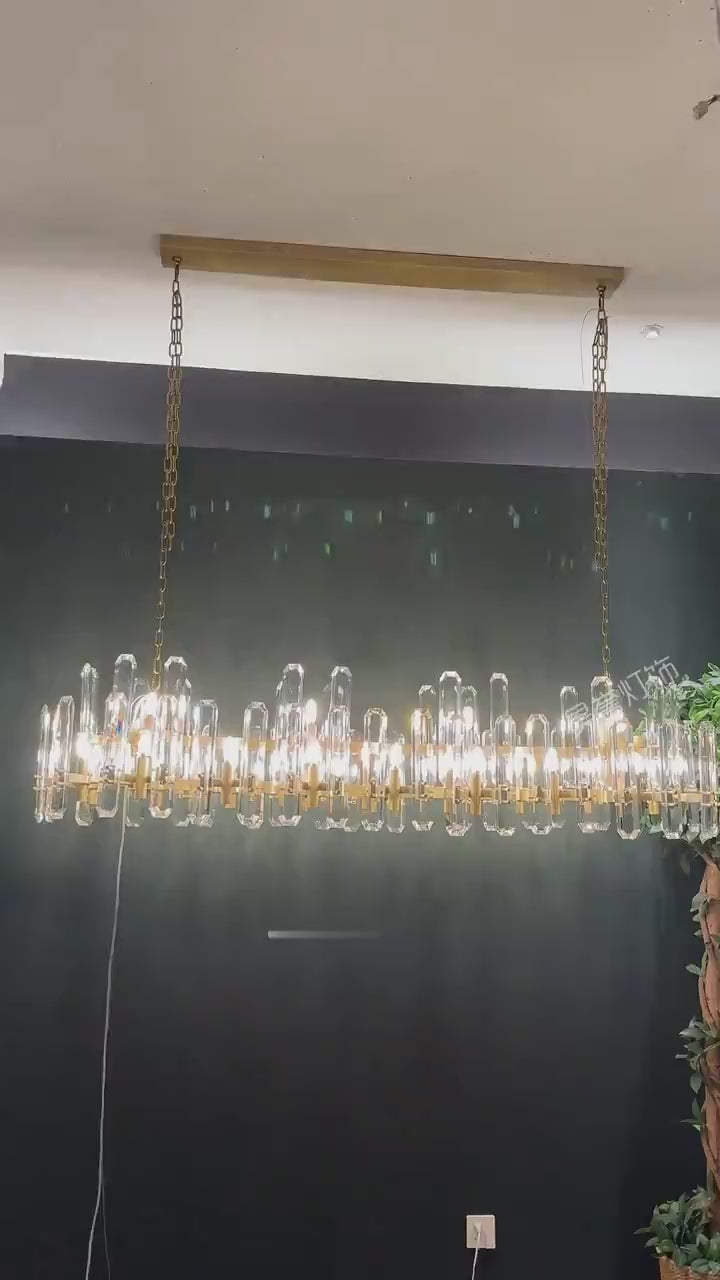 8/10 灯美式几何水晶黄铜矩形吊灯 40“&45”