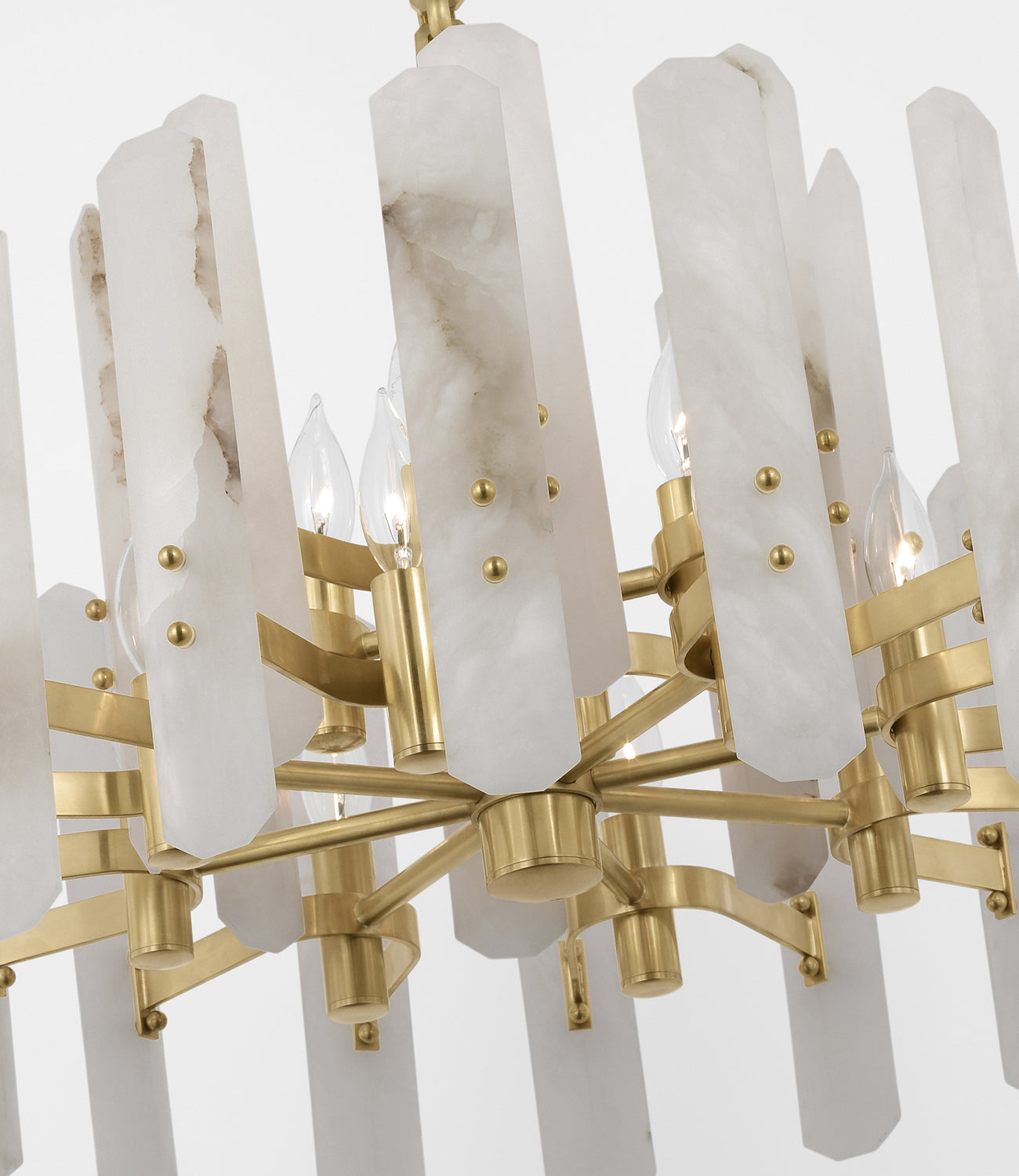 雪花石膏的材质是大理石和铜。这款优雅的吊灯将简约的现代设计与隽永的精致融为一体,为您的空间增添光彩。它完美契合客厅、餐厅或玄关,兼具实用性和艺术性。