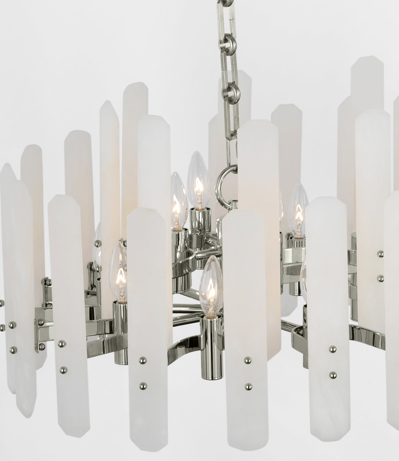这款枝形吊灯采用黄铜和抛光镍精制而成,彰显精致与永恒的优雅。它营造出温暖自然的氛围,同时确保高效的照明。