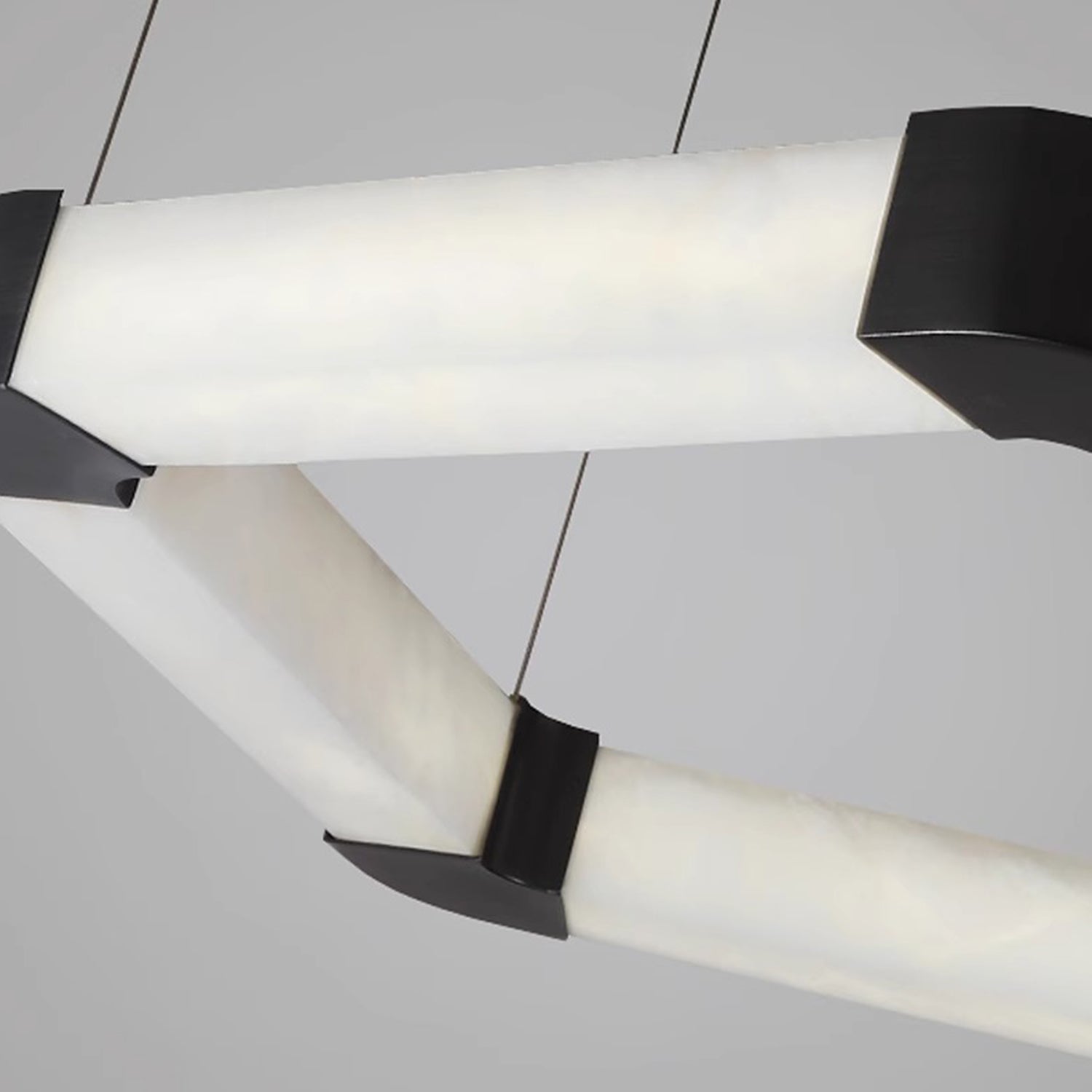 黑色不锈钢串雪花石膏双五边形环形吊灯,106W