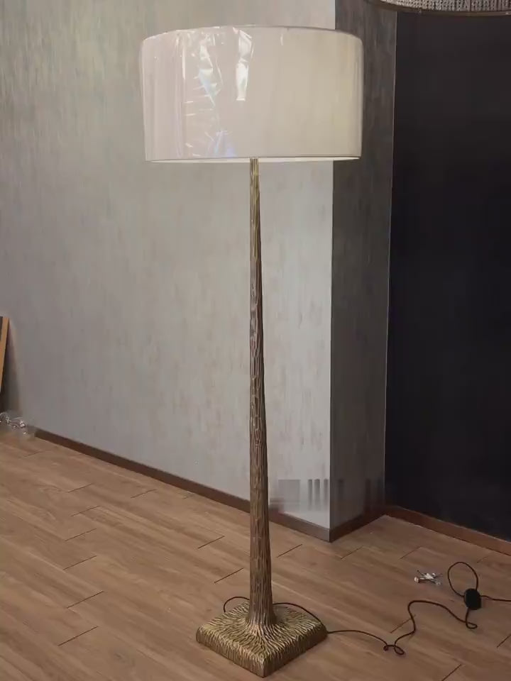 E27 铜/黑色高落地灯 24 英寸,带锻造细长纹理的亚麻布灯罩