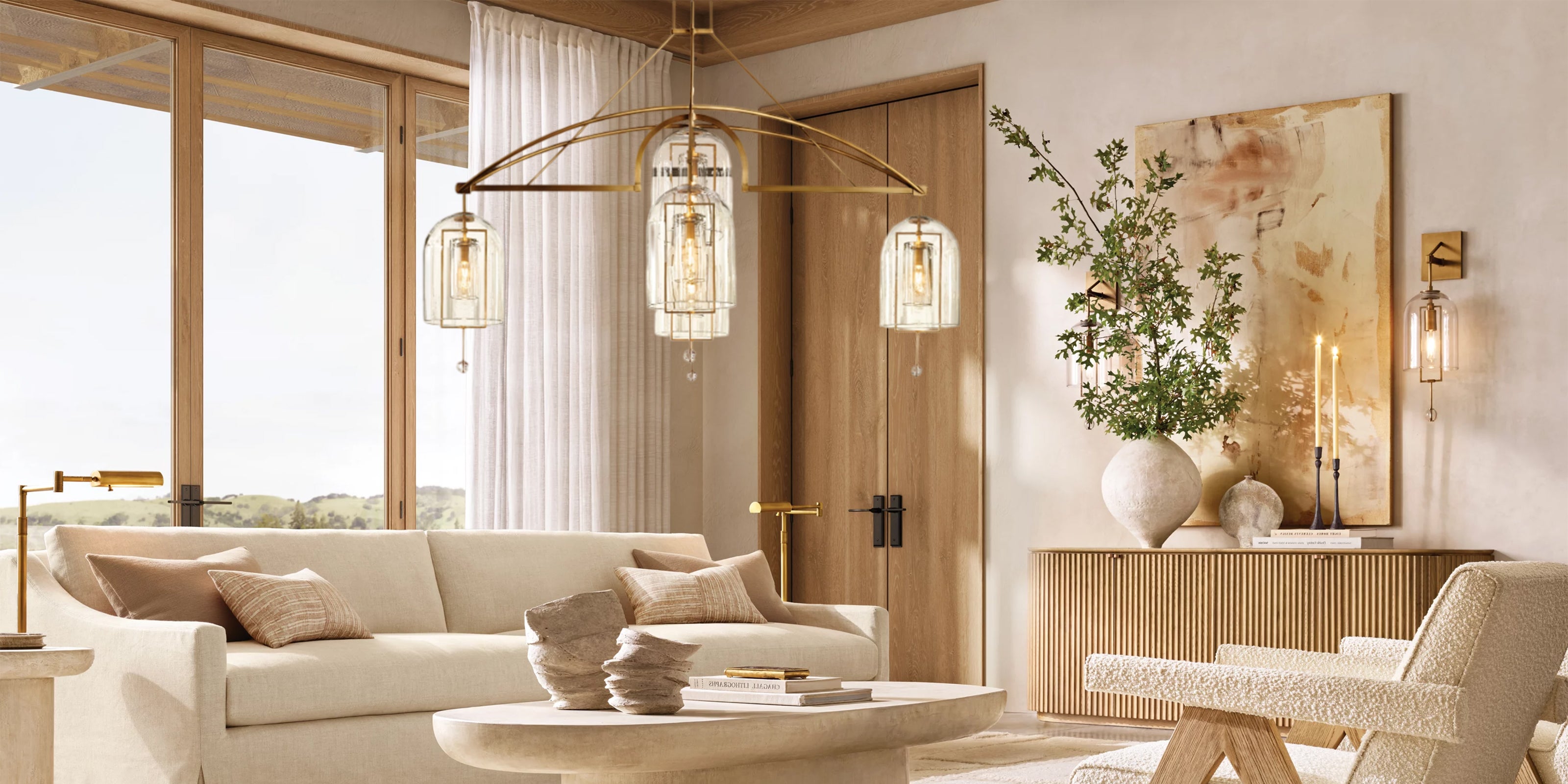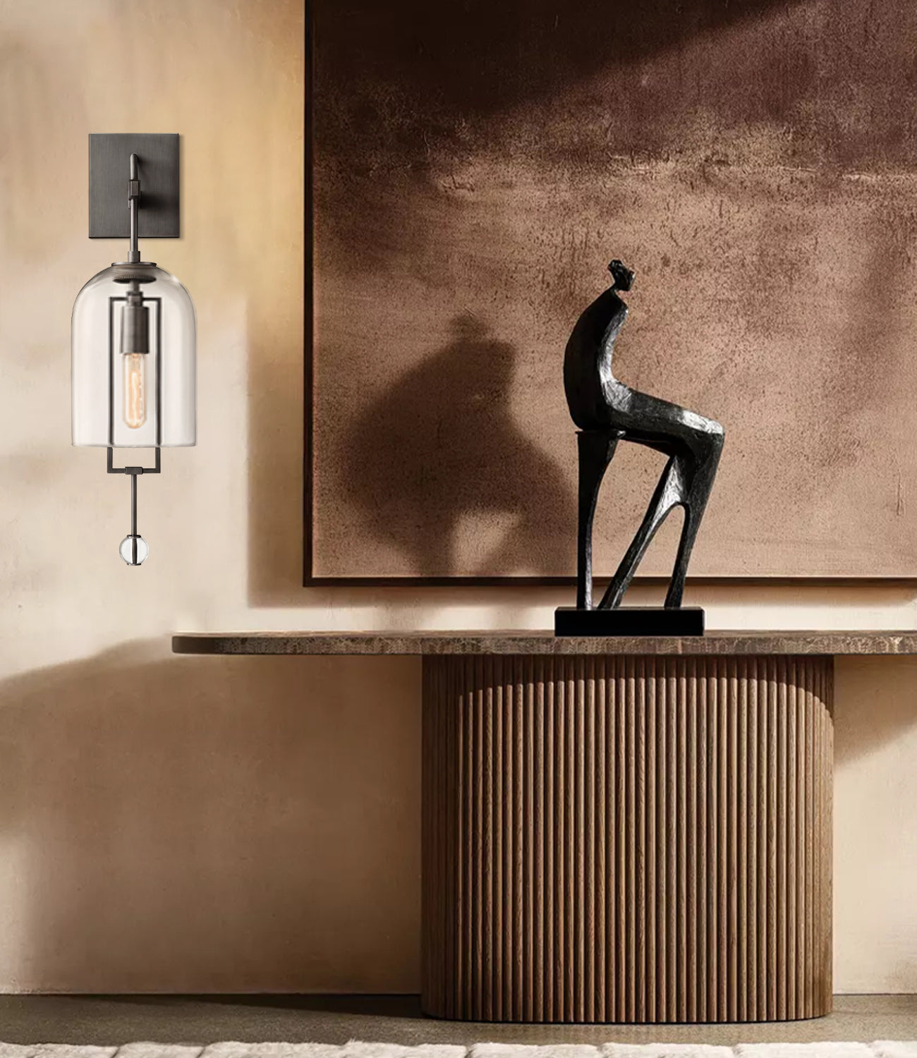 这些手工吹制的玻璃球和坩埚,灵感源自古董天平,悬浮于光滑的金属框架之中。雕塑般的灯具,融合了功能性、艺术性与象征性的和谐。