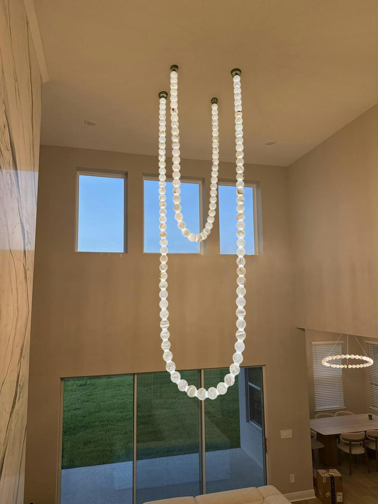 Crafted from luminous natural alabaster, our Pearl Necklace Chandelier redefines luxury lighting.
