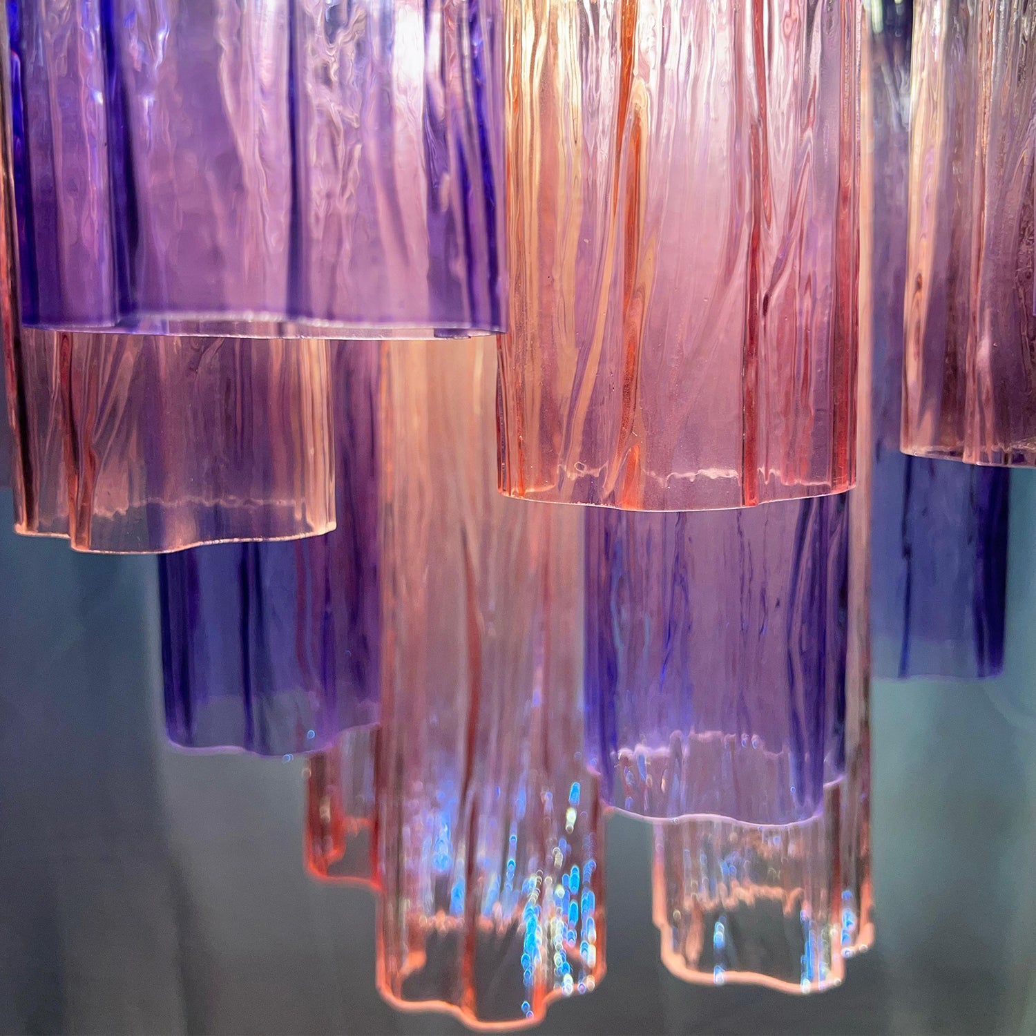 Features meticulously handcrafted fluted glass tubes in a soft, alluring pink & purple hue, echoing the artistry of Murano.