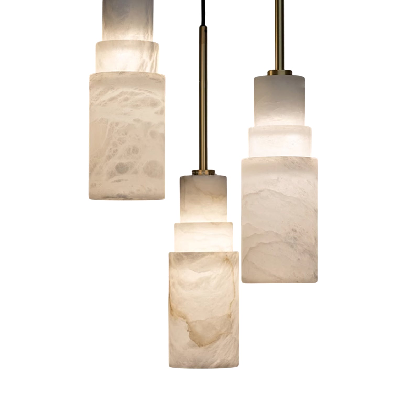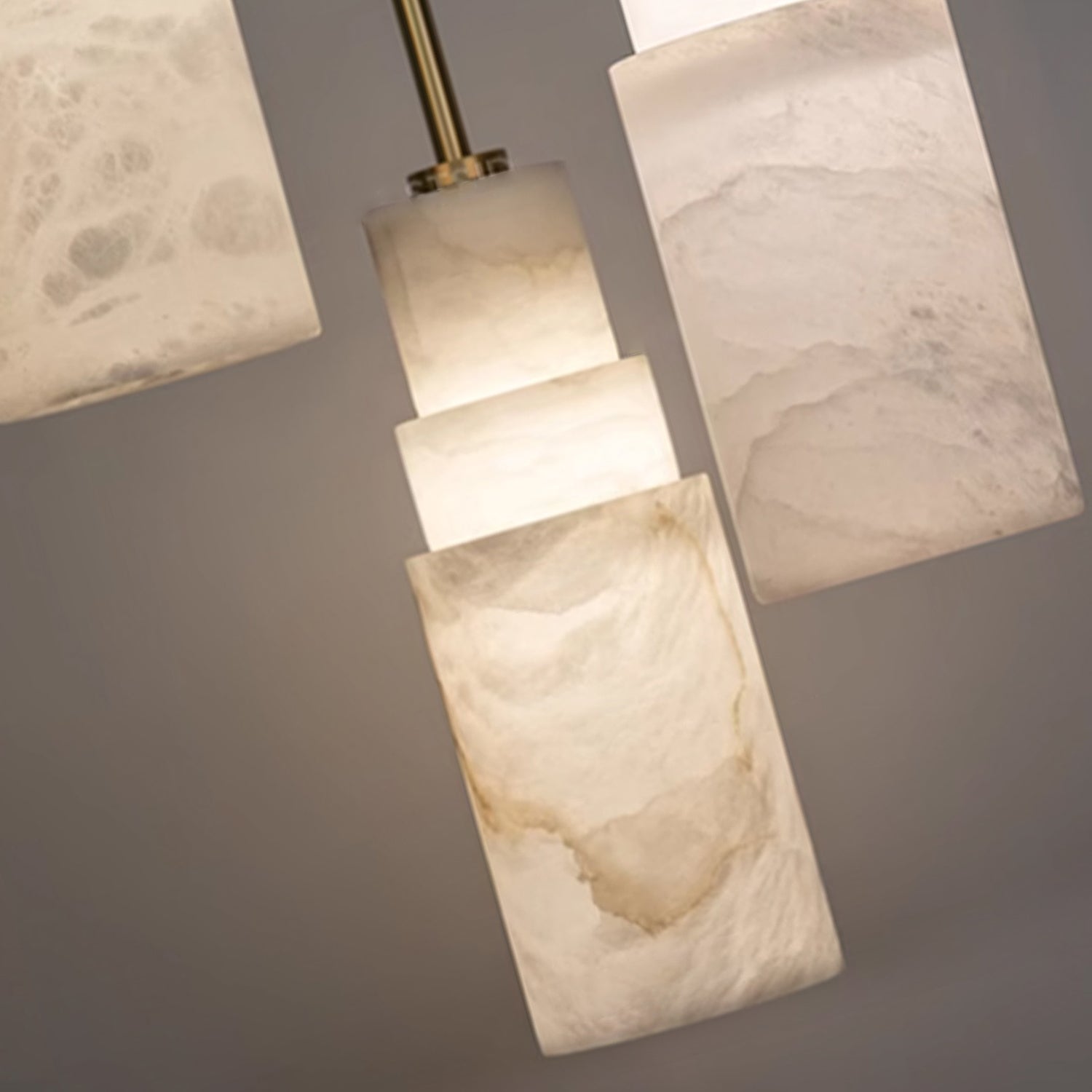 几何雪花石膏色调和古董黄铜的雕塑融合,精心打造,以温暖、分层的照明提升现代室内装饰。