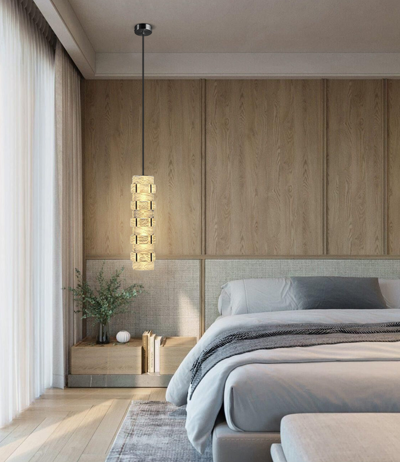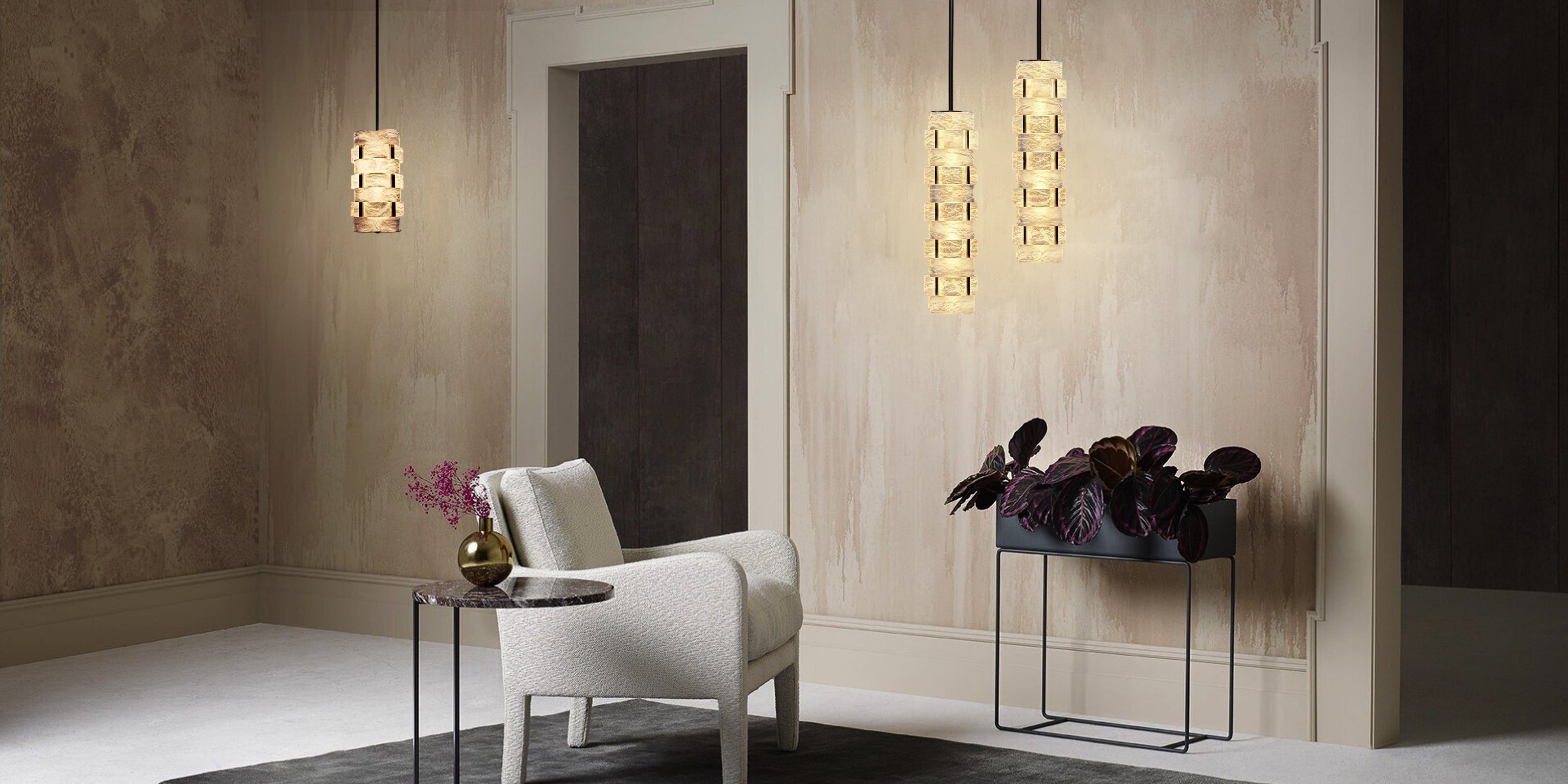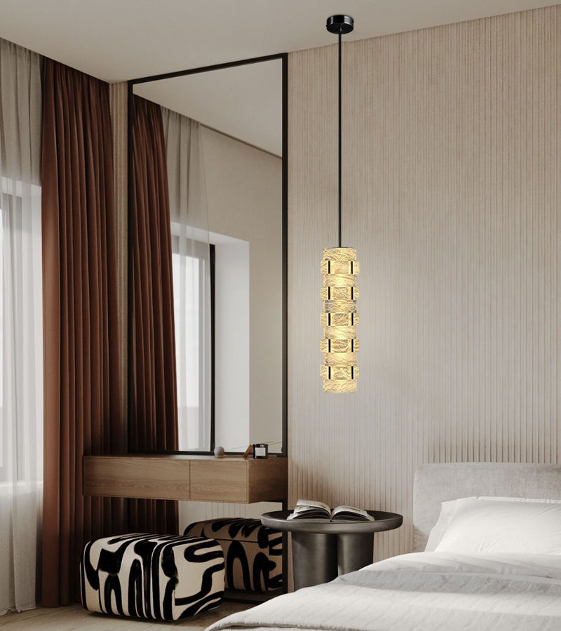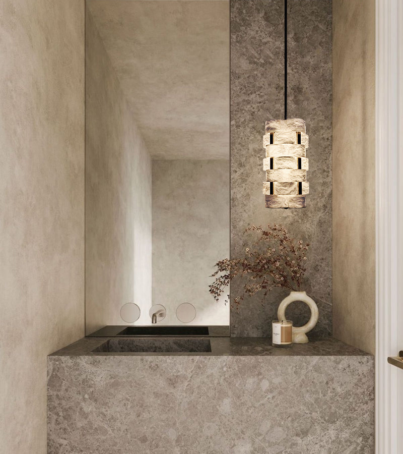 Alabaster stacked design with natural texture highlights a sense of layered variation.enhancing any architectural or interior space.