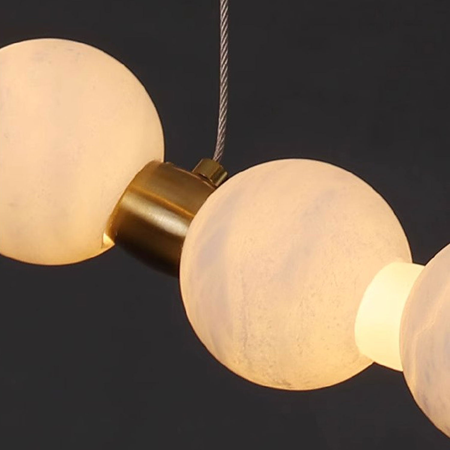 Organic Alabaster Globe beads on a gleaming metallic frame for timeless texture.