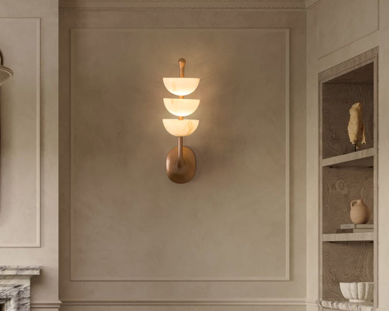 Modern Triple Alabaster Brass Stone Semi-Oval Wall Sconces 6in 15W