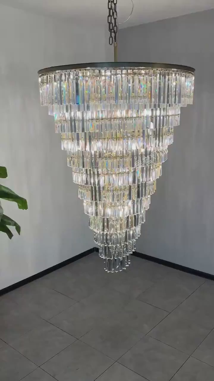以永恒的优雅提升您的空间。这款多层水晶吊灯融合了现代设计与华丽魅力,散发出迷人的光芒,将餐厅、客厅或办公室打造成奢华的休憩之所。