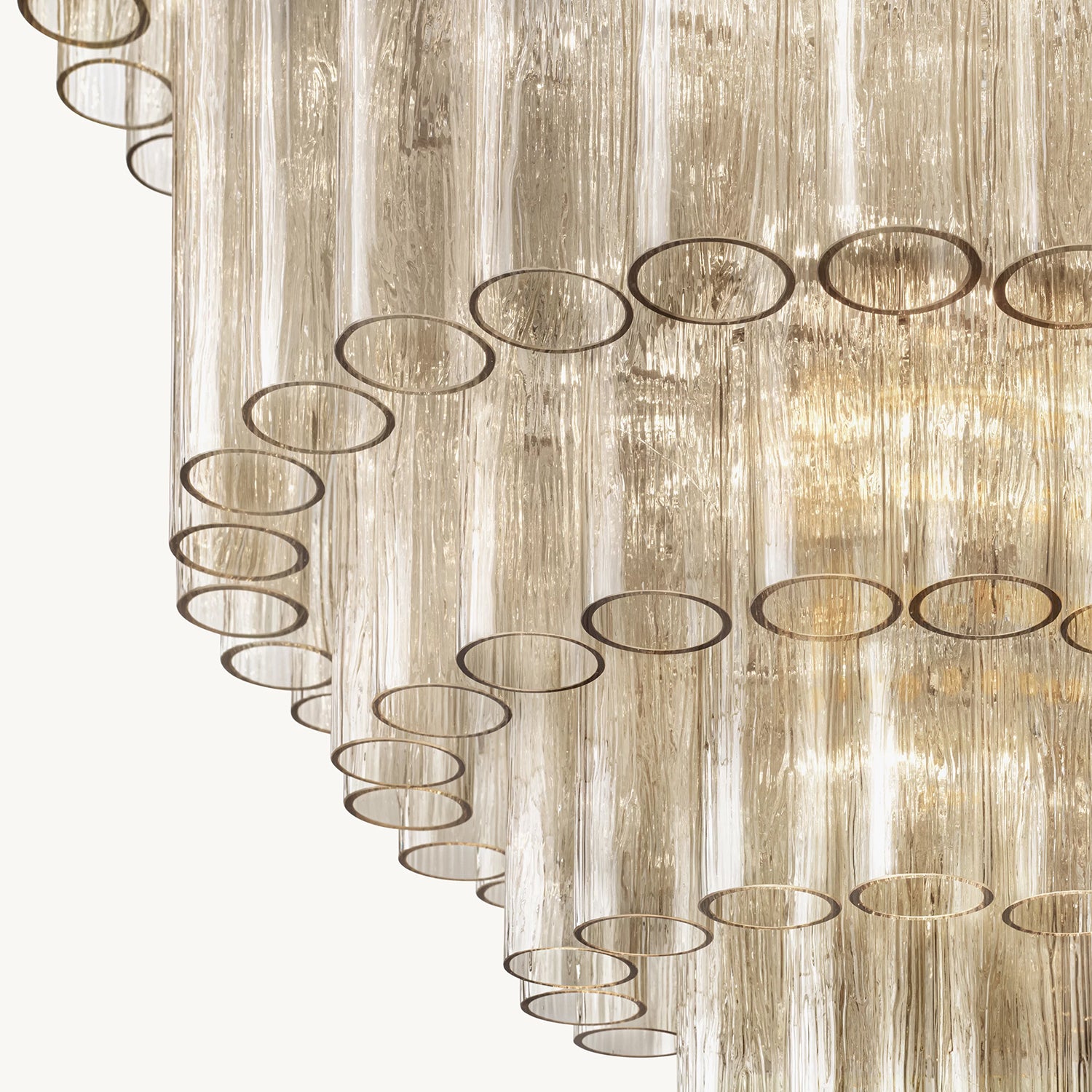 简洁的同心手工吹制管状玻璃,独特的灰褐色制造,更加吸引人的目光,非常适合大厅、楼梯、餐厅等场所的装饰。