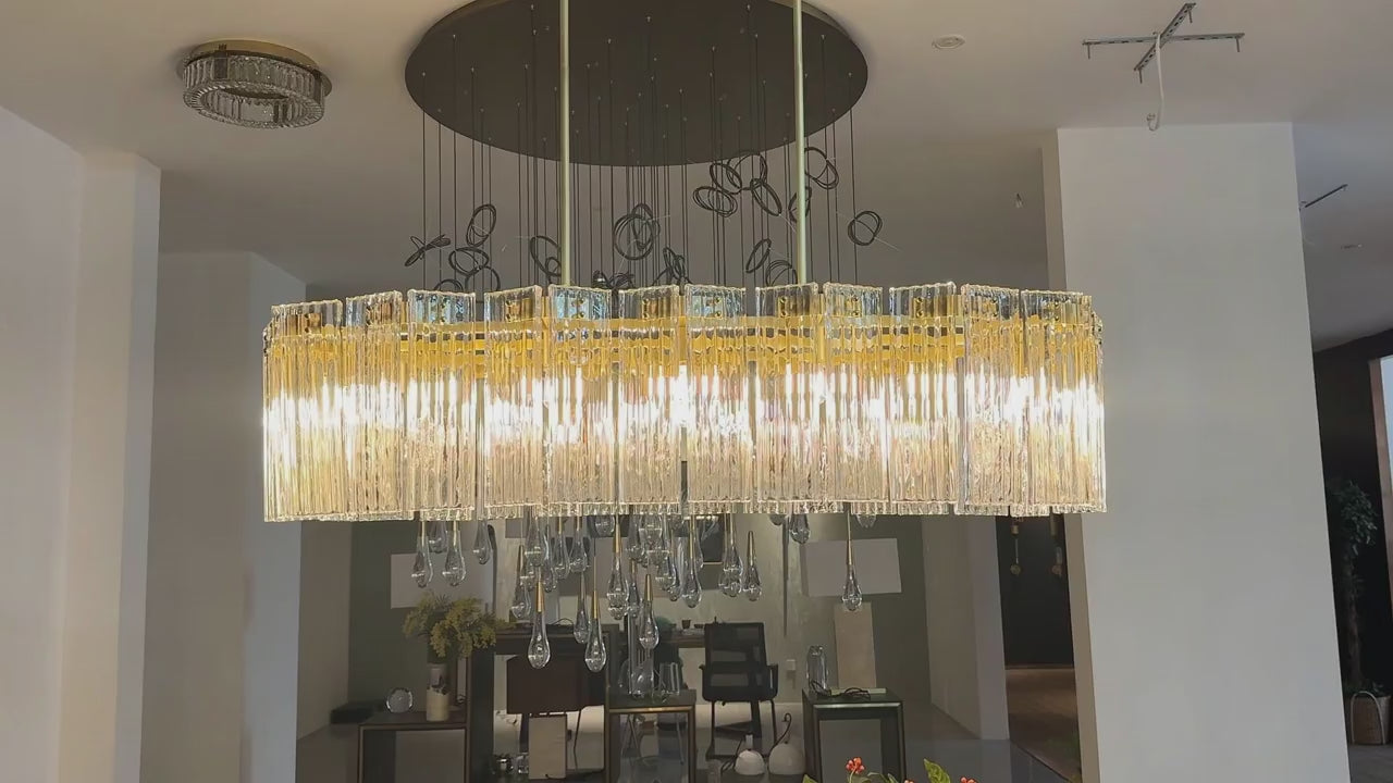 这款精美的圆形/椭圆形吊灯直接受到装饰艺术风格的华丽和大胆的启发,在任何空间中都能引人注目。它由凹槽玻璃面板制成,优雅地排列在钢框架周围,形成一颗璀璨的宝石,将内部的光线折射出来,在古典和现代室内装饰中产生迷人的效果。