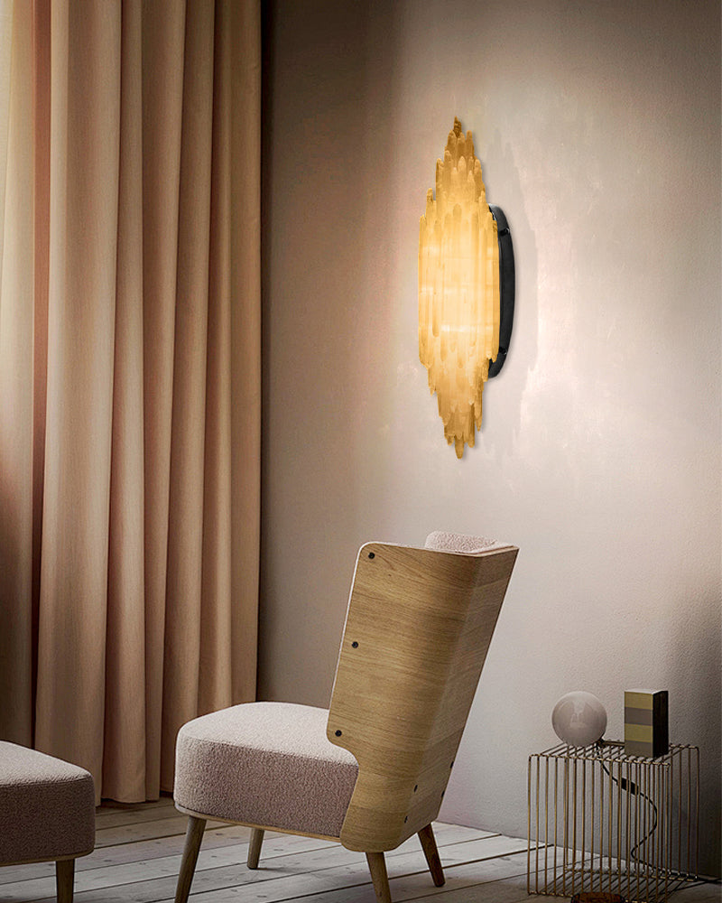 用透石膏壁灯的空灵光芒和灵性本质点亮您的空间,这绝对是照明设计中的杰作。透石膏壁灯采用结晶石膏精制而成,每颗透石膏水晶都精心镶嵌在框架上,宛如闪耀的钟乳石般悬挂于空中。