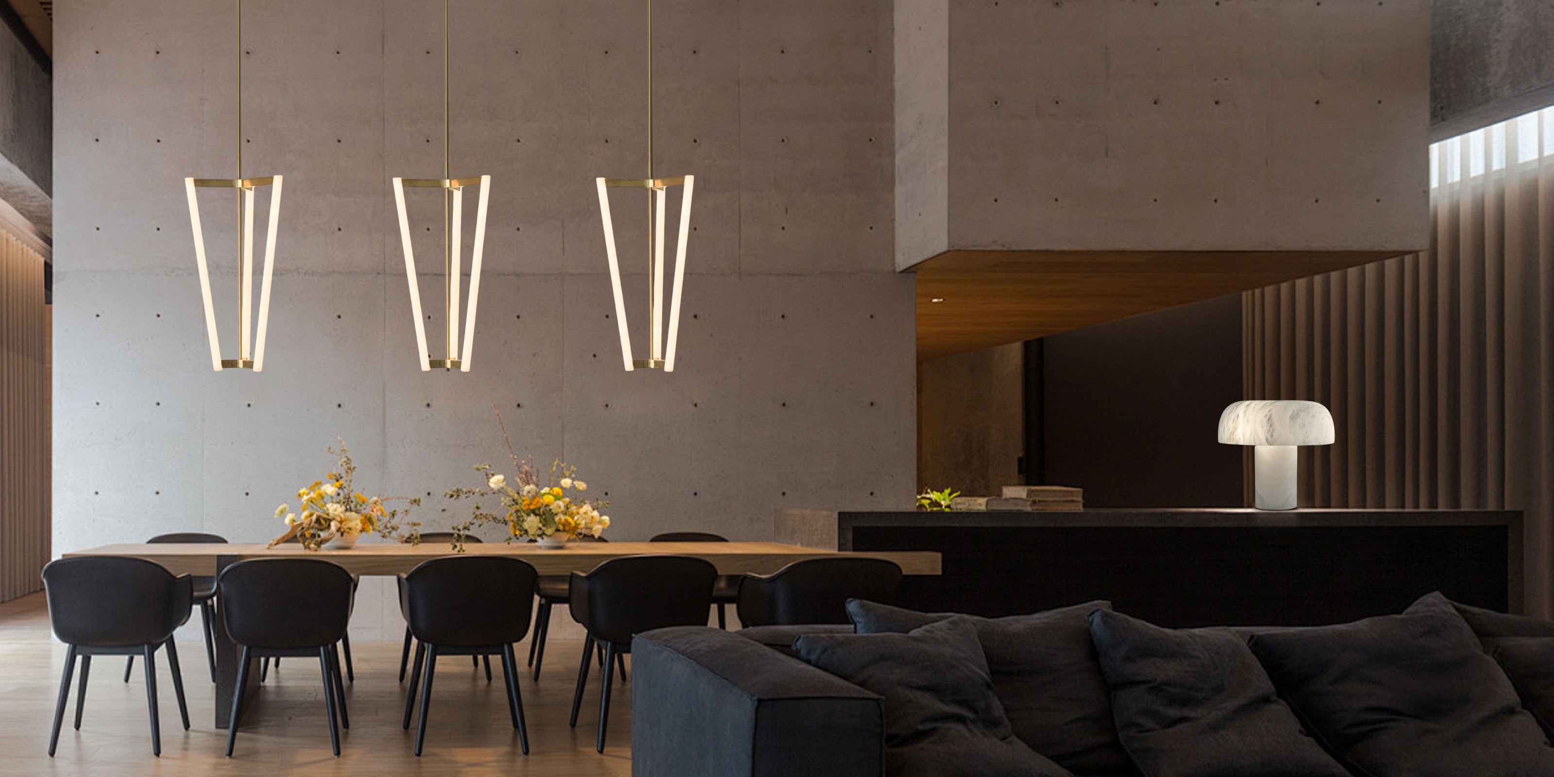 管状吊灯是一种三角形灯具,灯光从其三面照射出来,是任何住宅或商业空间的时尚点缀。