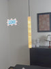 一组雪花石膏圆柱体悬挂在不同高度,形成圆形螺旋。屏幕的固定件采用螺纹实心黄铜设计和制造。