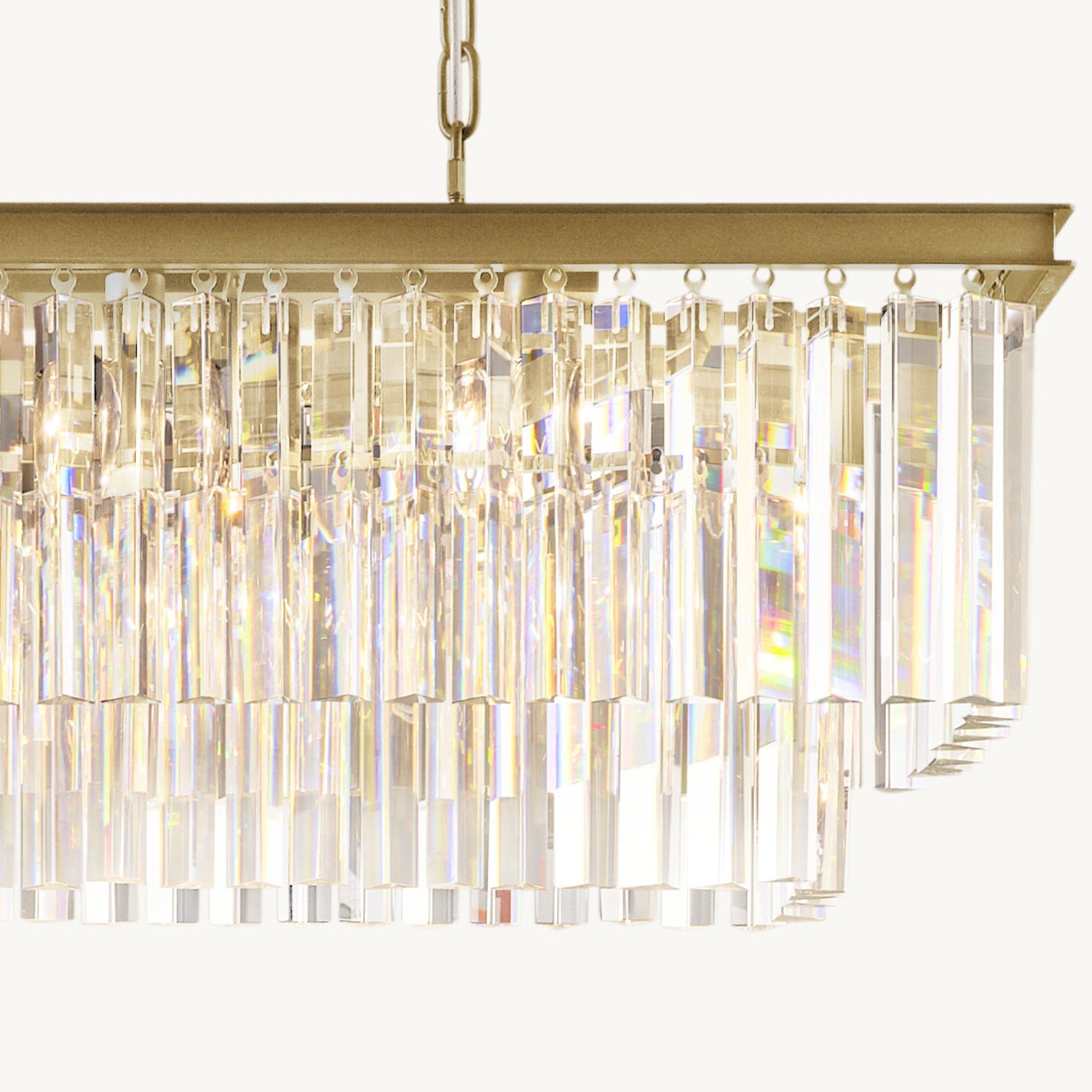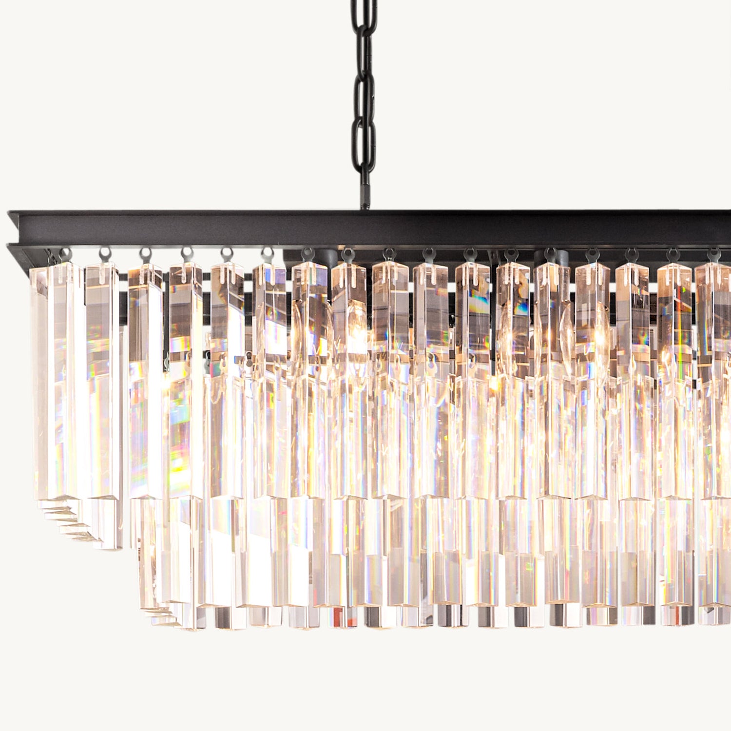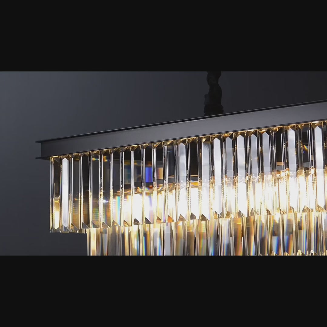 这款矩形水晶吊灯采用优雅的黑色或金色框架,支撑着多颗水晶。水晶反射和折射光线,营造出璀璨夺目的光彩和美感。这款吊灯非常适合提升您的家居装饰和舒适度,为任何空间增添优雅与光彩。
